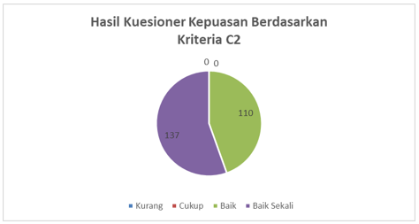 Berdasarkan Kriteria C2 yaitu kriteria tata pamong, tata kelola dan kerjasama, menunjukan sebanyak 137 responden menilai bahwa pelayanan tata kelola Program Studi D4 Teknologi Listrik Industri.baik sekali dan 110 responden menilai baik. Hal ini menunjukan civitas akademika puas terhadap kinerja pada program studi.
