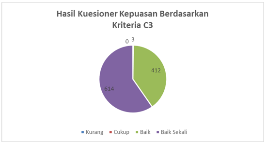 Berdasarkan Kriteria C3 yaitu kriteria mahasiswa, menunjukan sebanyak 614 responden menilai bahwa pelayanan mahasiswa Program Studi D4 Teknologi Listrik Industri.baik sekali dan 412 responden menilai baik.