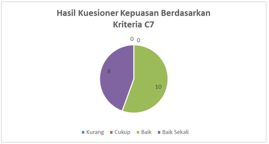 Berdasarkan Kriteria C7 yaitu kriteria penelitian, menunjukan sebanyak 8 responden menilai bahwa pelayanan penelitian Program Studi D4 Teknologi Listrik Industri.baik sekali dan 10 responden menilai baik.